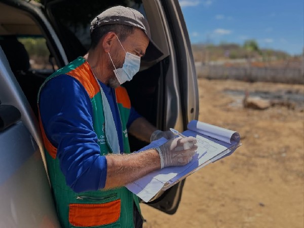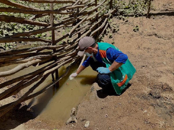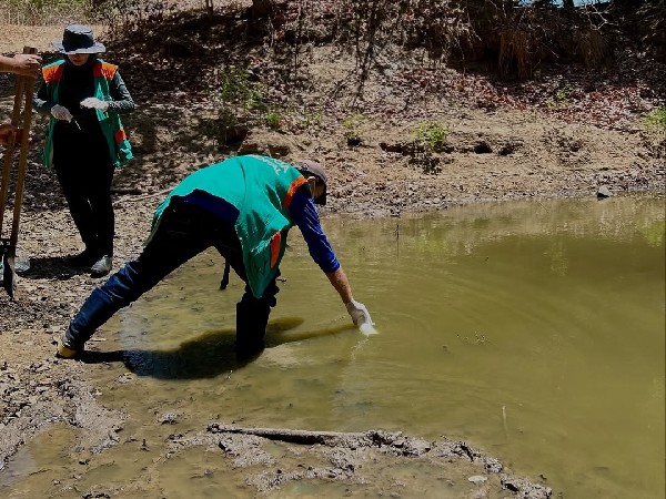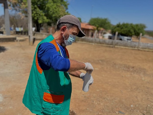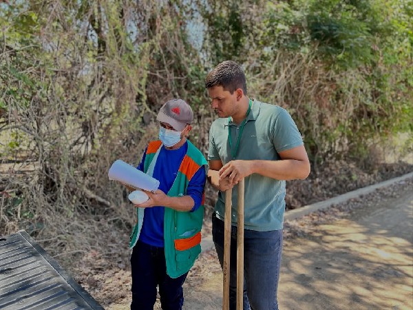 A equipe da Secretaria de Saúde do Estado, em parceria com a equipe da Secretaria Municipal de Saúde, esteve hoje em pontos estratégicos do município realizando a coleta de água e solo para análise laboratorial.